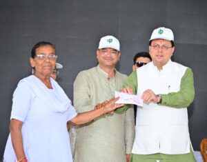 मुख्यमंत्री पुष्कर सिंह धामी ने बुधवार को देहरादून नगर निगम के अंतर्गत केदारपुरम में योगा पार्क एवं अन्य विकास कार्यों का लोकार्पण एवं शिलान्यास किया। इस अवसर पर उन्होंने एआई चैटबॉट ‘निगम सारथी’ लॉन्च किया और हरित नीति के डोक्यूमेंट का अनावरण भी किया। मुख्यमंत्री ने पर एक पेड़ माँ नाम के नाम के तहत रूद्राक्ष का पौधा रोपा, जो सरकार द्वारा चलाये गये बृहद पौधारोपण अभियान के तहत नगर निगम क्षेत्र देहरादून के अन्तर्गत इस वर्ष रोपा गया एक लाखवां पौधा था। कार्यक्रम में मुख्यमंत्री ने स्वच्छता सम्मान सेनानियों और कर निरीक्षकों को सम्मानित भी किया। इस अवसर पर मुख्यमंत्री ने नशा मुक्ति के लिए सामूहिक शपथ भी दिलाई।