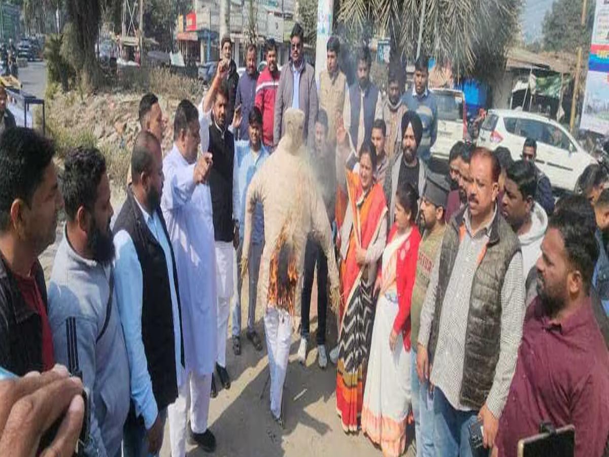 रूद्रपुर : कांग्रेसियों ने फूंका ट्रंप और मोदी सरकार का पुतला फूंका