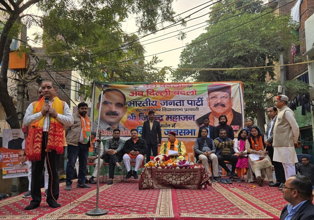श्री महाराज ने कहा कि दिल्ली में आप “दा” की सरकार का जाना और भाजपा की सरकार का आना तय है। आम आदमी पार्टी की सरकार से दिल्ली की जनता त्रस्त है उसे केंद्र की सरकार की जनकल्याणकारी योजनाओं का लाभ नहीं मिल पा रहा है। आयुष्मान भारत योजना के तहत मिलने वाली पांच लाख रुपए तक की फ्री इलाज की सुविधा से उसे दूर रखा गया है। भाजपा की सरकार बनने पर देश की राजधानी के लोगों को केन्द्र की सभी योजनाओं का लाभ मिलने के साथ साथ वरिष्ठ नागरिकों को अतिरिक्त पांच लाख रुपये का मुफ्त इलाज दिया उपलब्ध करवाया जायेगा। हमने संकल्प लिया है कि दिल्ली में डबल इंजन की सरकार बनने पर महिला समृद्धि योजना के तहत दिल्ली की महिलाओं को प्रति माह 2,500 रुपये देने के अलावा महिलाओं के लिए फ्री बस यात्रा और 6 महीने का सवेतन मातृत्व अवकाश दिया जाएगा।