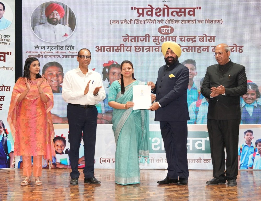देहरादून(आरएनएस)। राज्यपाल लेफ्टिनेंट जनरल गुरमीत सिंह (से नि) ने राजभवन में विद्यालयी शिक्षा विभाग द्वारा आयोजित प्रवेशोत्सव-2025 कार्यक्रम में मुख्य अतिथि के रूप में प्रतिभाग किया। उन्होंने इस दौरान स्कूलों में प्रवेश लेने वाले बच्चों का स्वागत कर उन्हें शिक्षण सामग्री वितरित की। कार्यक्रम के दौरान राज्यपाल ने वीर माधो सिंह भण्डारी उत्तराखण्ड तकनीकी विश्वविद्यालय द्वारा राज्य के सभी विद्यालयों के लिए निर्मित ‘स्कूल डैश-बोर्ड’ का लोकार्पण किया एवं नेताजी सुभाष चंद्र बोस आवासीय विद्यालयों के 13 केंद्रों को आर्थिक सहायता भी प्रदान की।